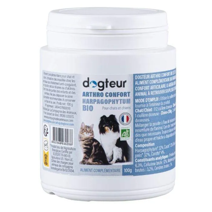 Car ce que l’harpagophytum soulage chez l’homme - douleurs, raideurs, inflammations - elle le calme tout autant chez le chien ou le chat.